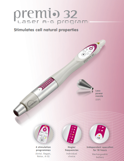 The short impulse bursts (Superpulsed emission) are set to the Nogier Frequencies. They deliver